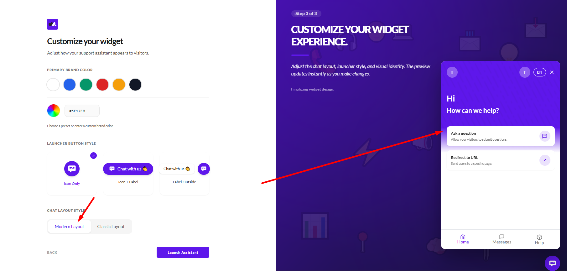 Both the Classic and Modern layouts are designed to deliver effective support using the same underlying system, so the choice ultimately comes down to how you want users to interact with your widget.