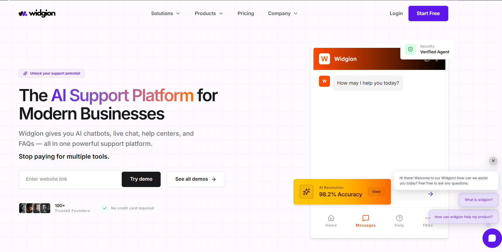 At the same time, support tools are often scattered across different platforms, and scaling support typically leads to higher costs. Widgion addresses this by bringing support, automation, and lead capture into one unified system, helping you respond faster, reduce manual effort, and convert more visitors without increasing overhead.