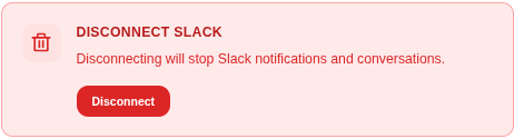 You can disconnect Slack at any time by going to Manage Integrations and selecting Disconnect. Once disconnected, your chatbot will no longer receive or send messages in the connected Slack workspace or channels.